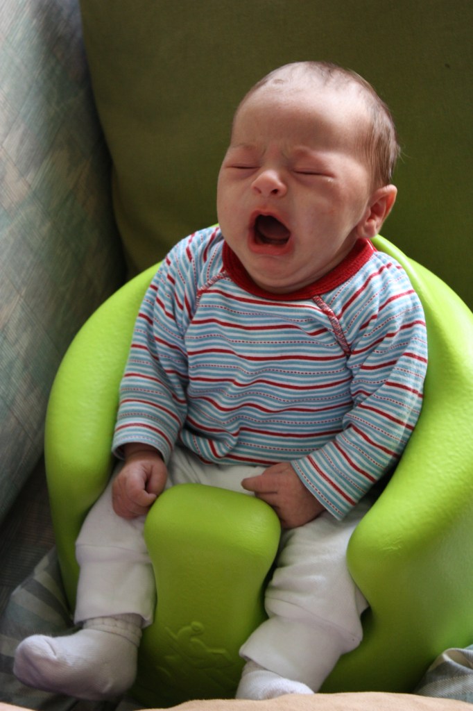 He's not happy...this is what happens when you put a grumpy baby in the Bumbo.